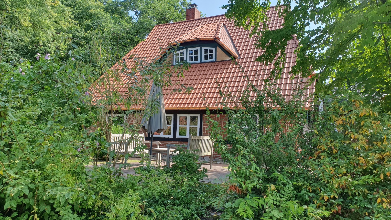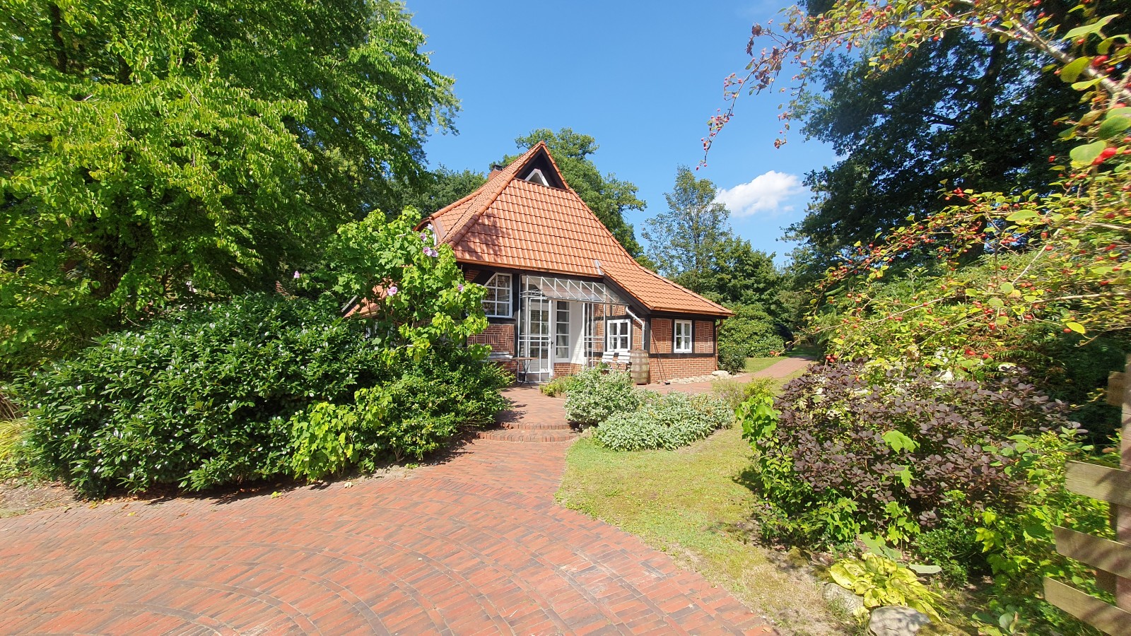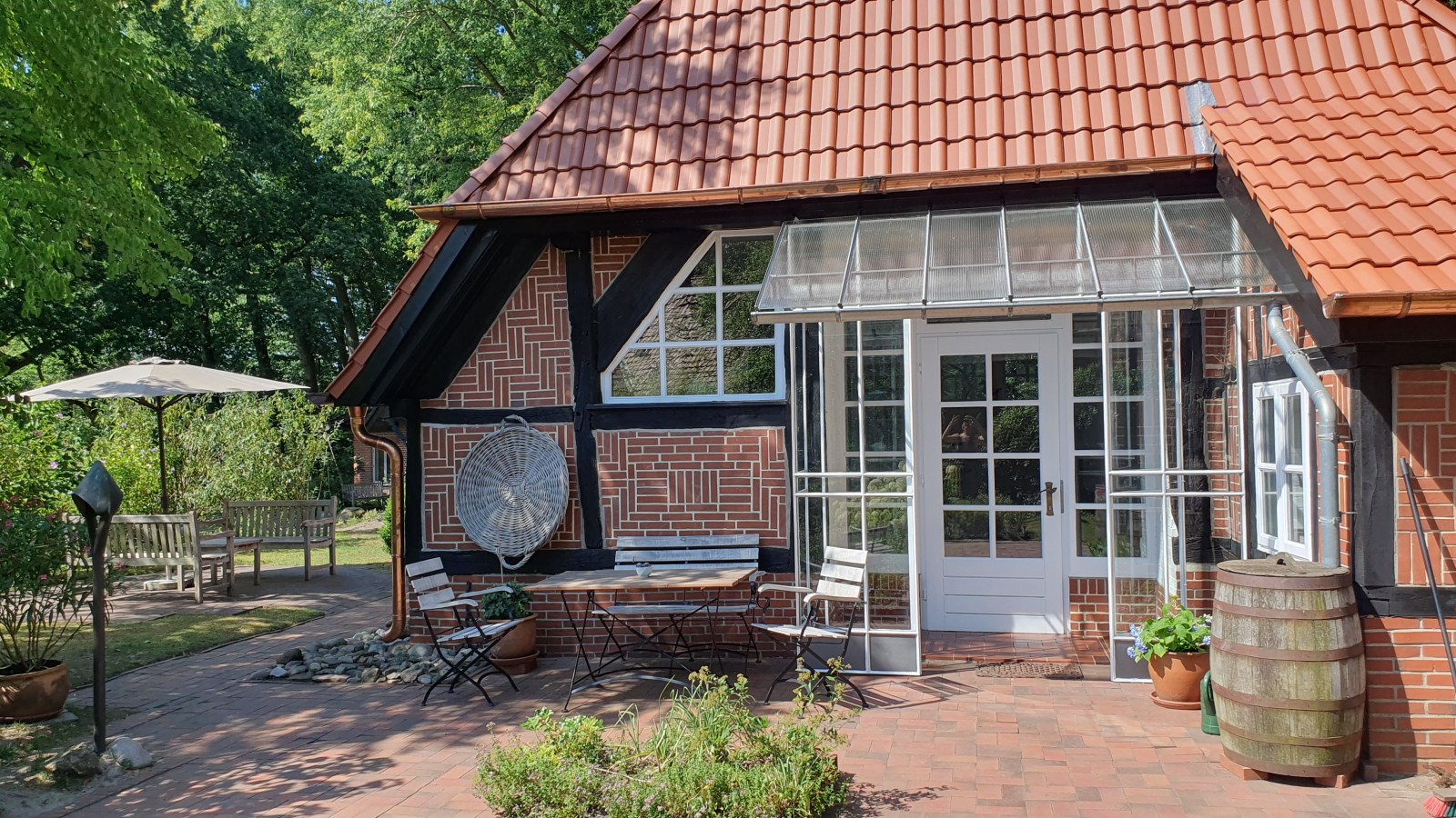 Der ehemals reetgedeckte Schafstall ist die "Perle" des Geesthofes Siedschelje. Drei Terrassen bieten zu jeder Tageszeit einen angenehmen Ruheplatz. In dem umgebenden Garten findet man neben Rhododendren, blühenden Sträuchern und Staudenbeeten einen kleinen Kräutergarten.